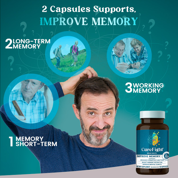 CureFight utilizes clinically proven ingredients, keeps the brain active, rejuvenates brain cells, slows neuronal degeneration, and enhances short-term memory (reproduction, recognition, or recall of limited information within 10-30 seconds), long-term memory (permanent storage for knowledge use minutes or years later), and working memory (maintenance and manipulation of information for complex tasks), effectively preventing Alzheimer's disease.